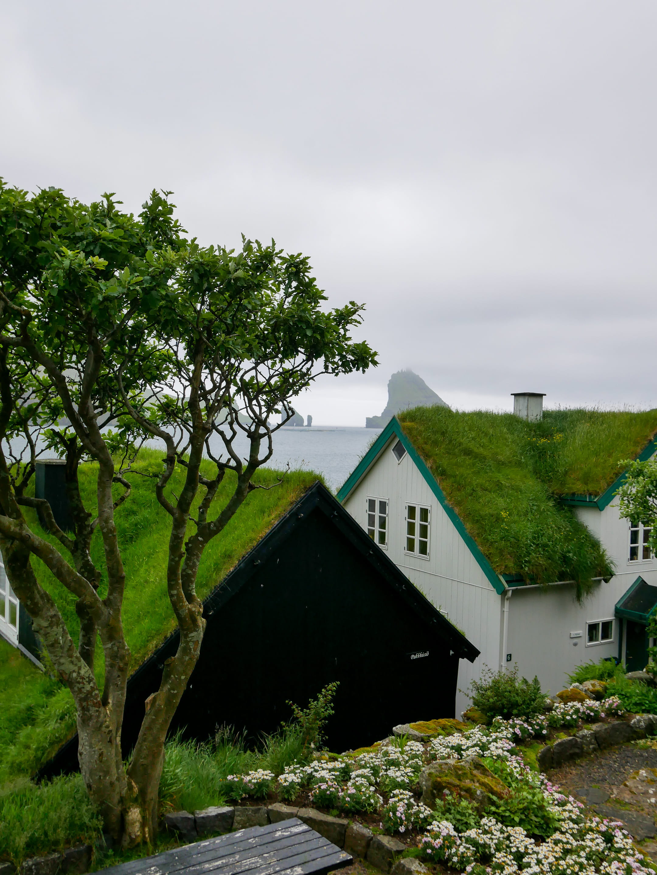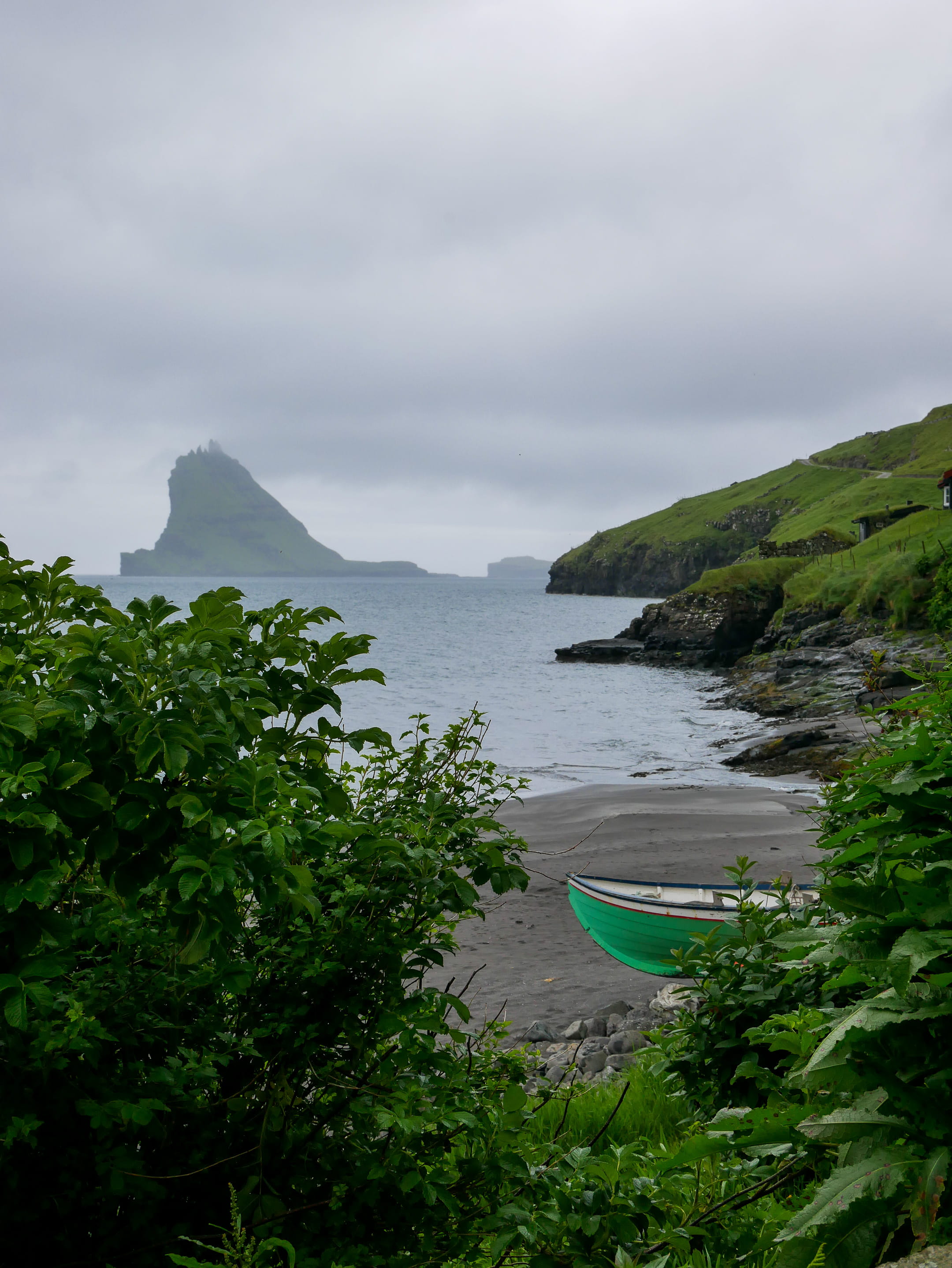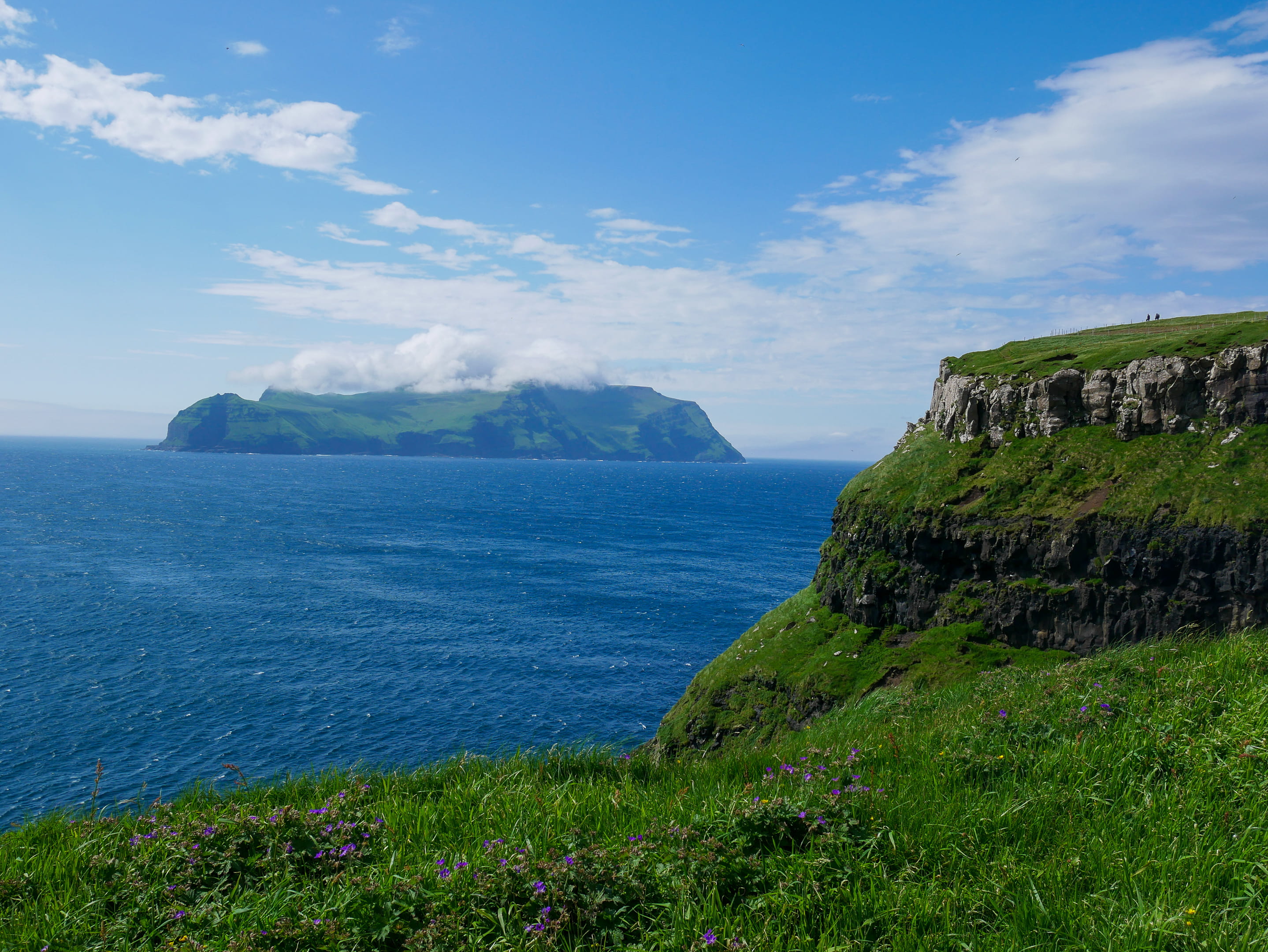 On voit l’île de Mykines au loin, quasi-inhabitée par les humains mais très peuplée d’oiseaux. C’est une île assez prisée des touristes pour voir des oiseaux de très près. On s’est dit que l’on en verrait plein en Islande de toute façon, nous n’avons donc pas fait le voyage en bateau pour visiter cette île.
