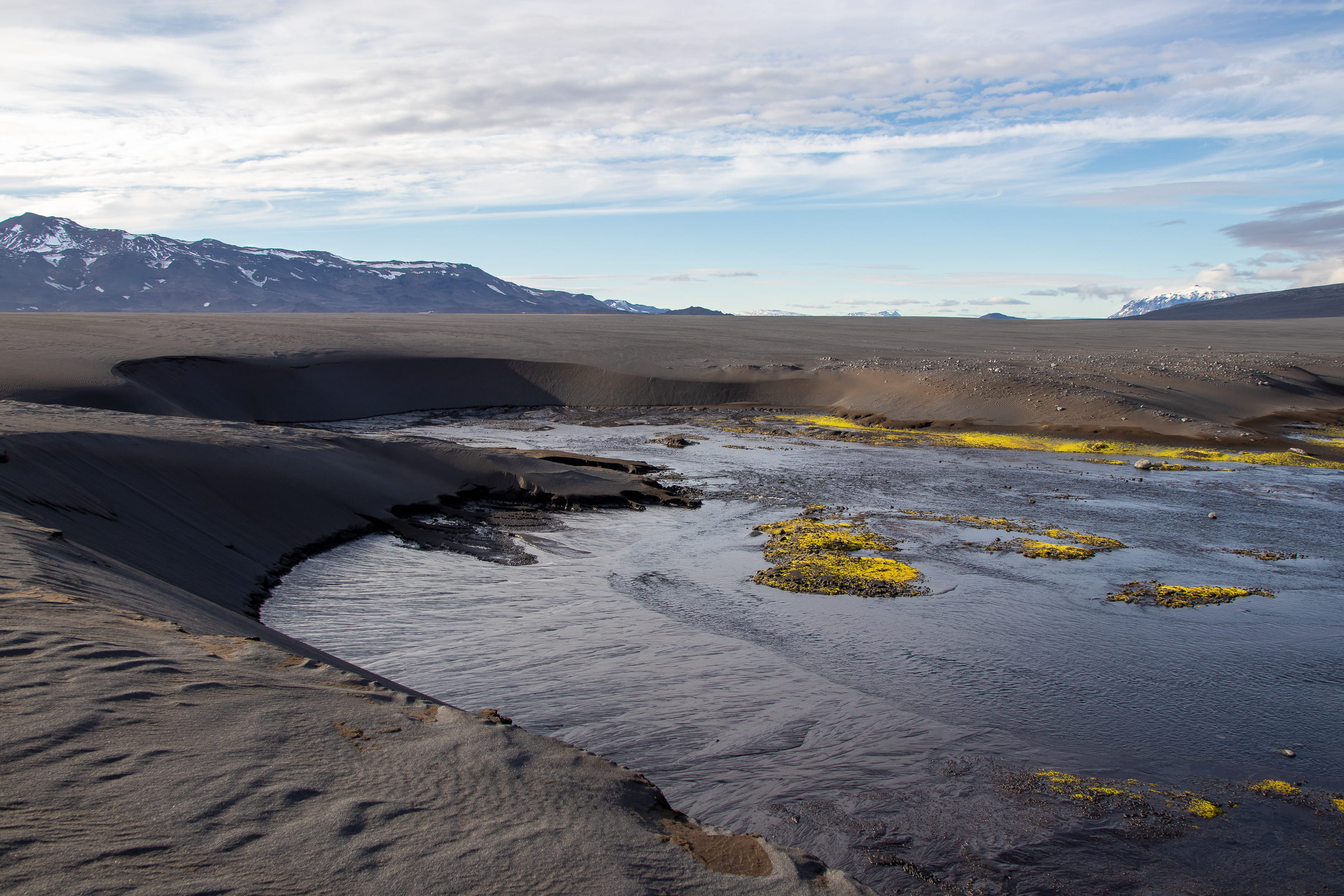 En début de soirée, nous allons voir la rivière qui semble apparaitre au milieu de nulle part en plein désert. Encore un paysage très différent de ce que nous avons vu jusque là, de la neige blanche au sable noir, on en prend plein les yeux !