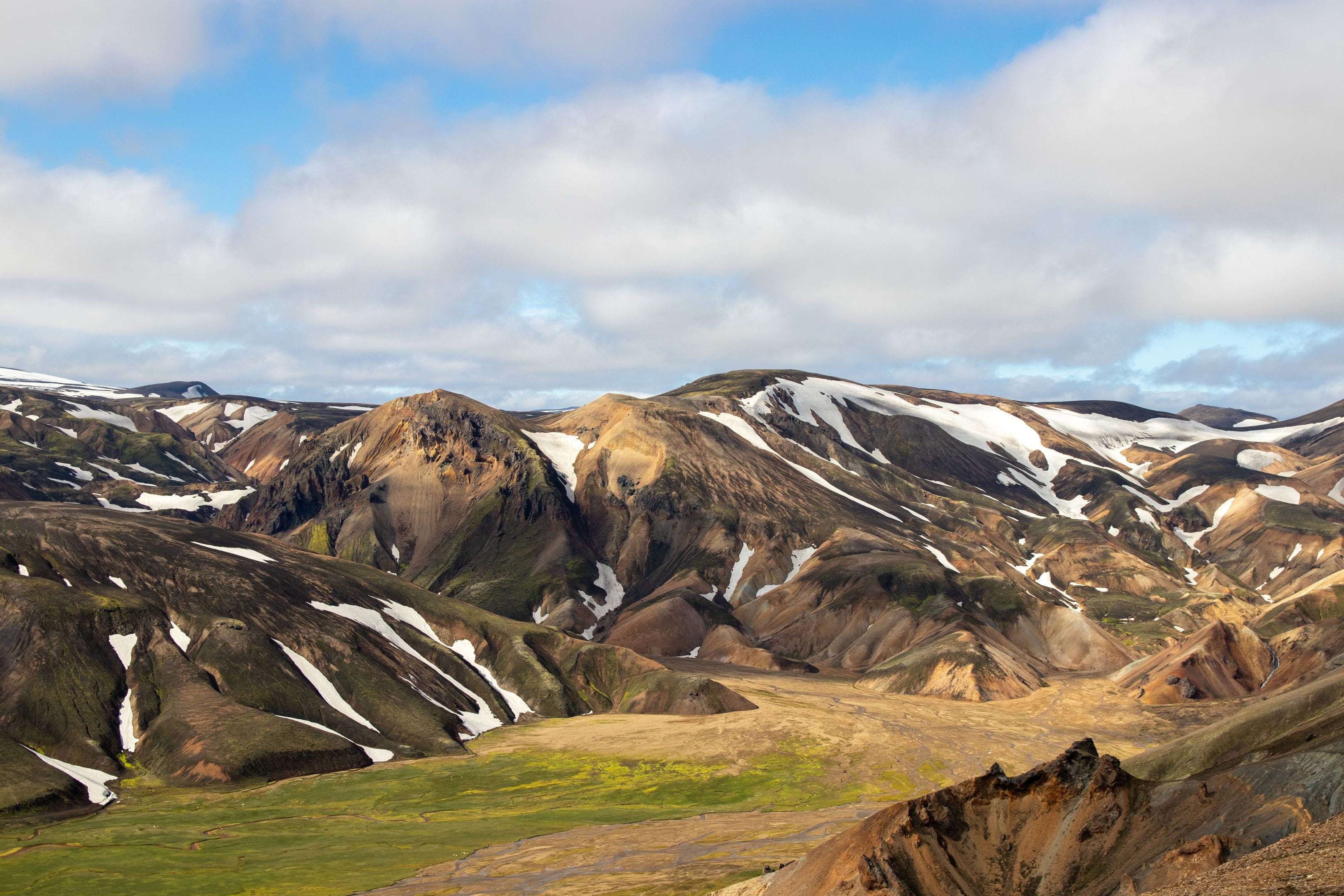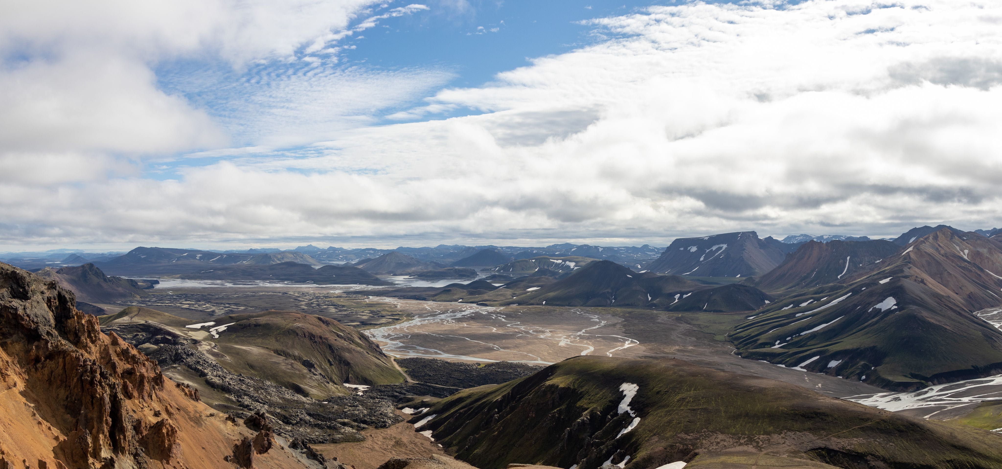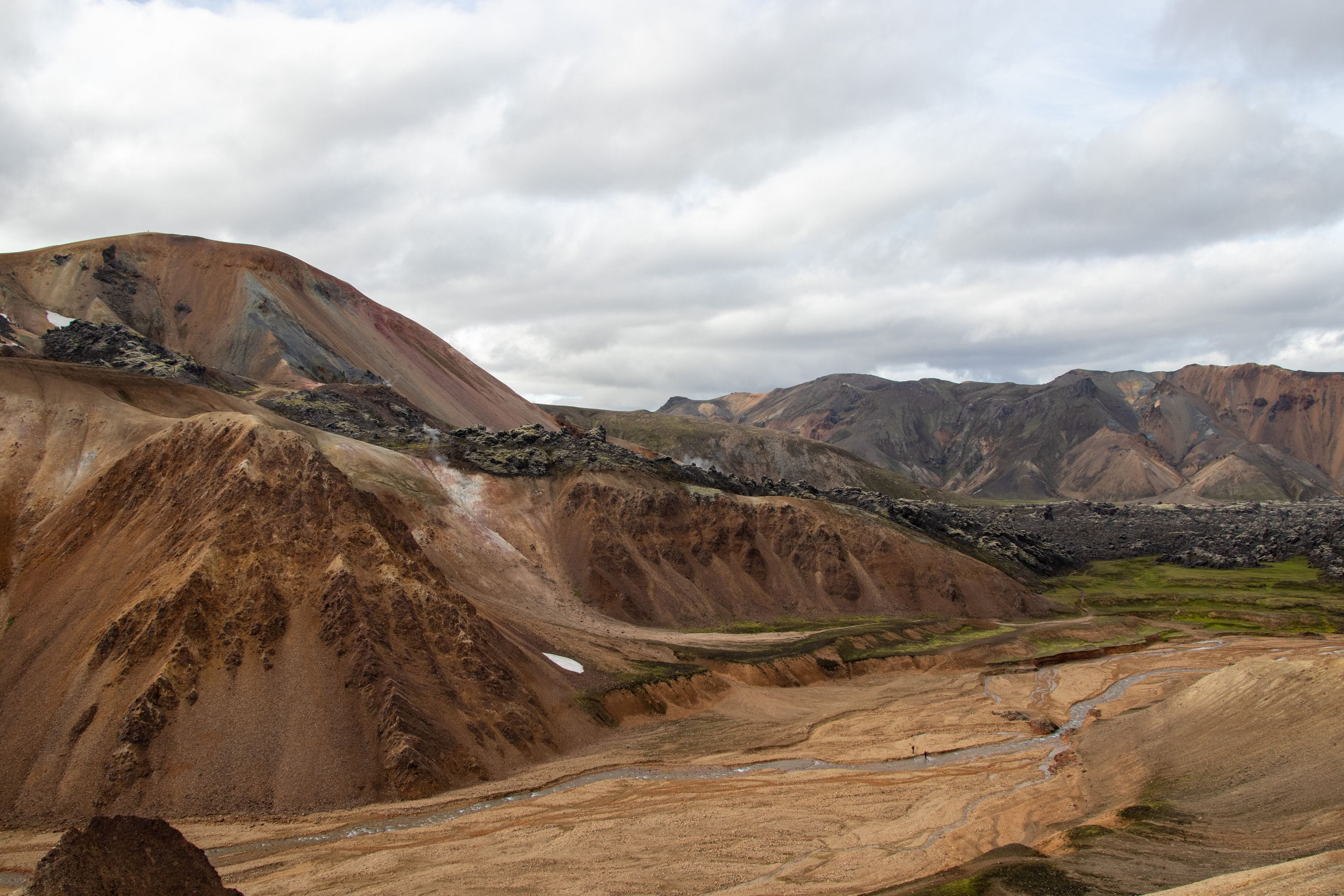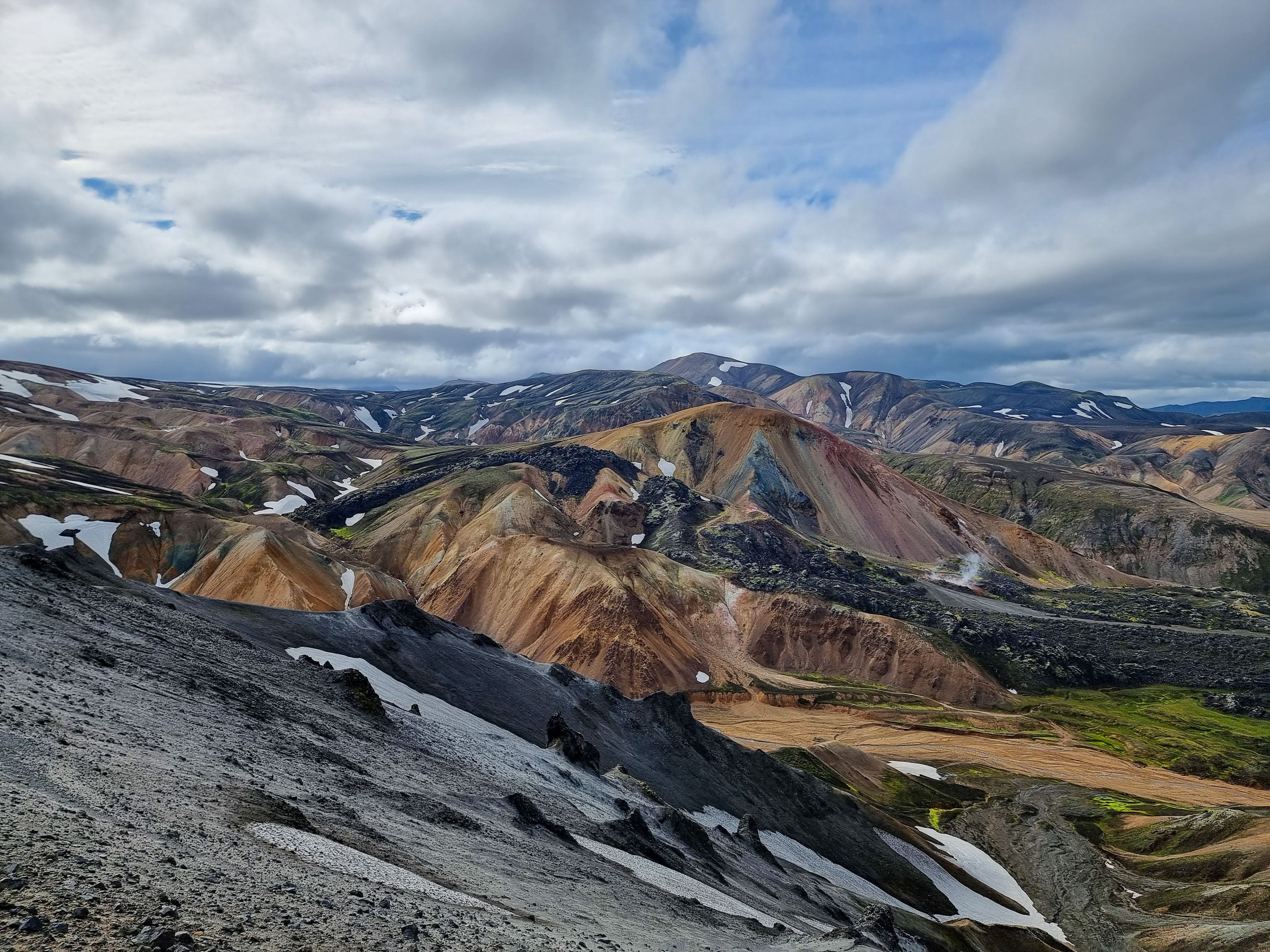 Nous allons faire deux randonnées et dormir une nuit sur le camp du Landmannalaugar pour profiter pleinement de ce lieu qui ne se dévoile vraiment qu’au prix de quelques efforts. Les deux randonnées se complètent bien car elles donnent des points de vue différents sur ces montagnes aux couleurs chatoyantes. Tout est beau où que l’on regarde à perte de vue ! Les photos parlent d’elles-mêmes.
