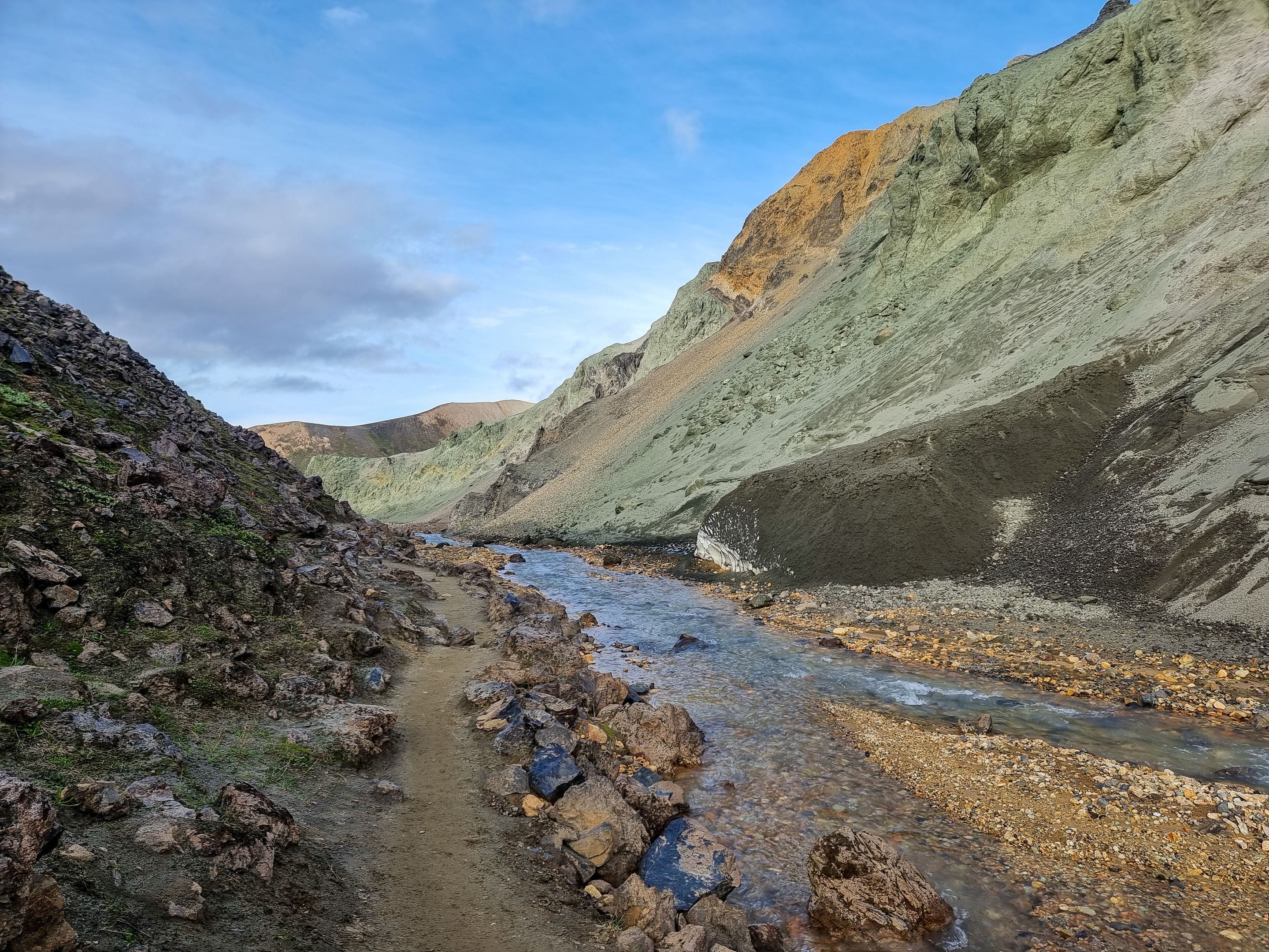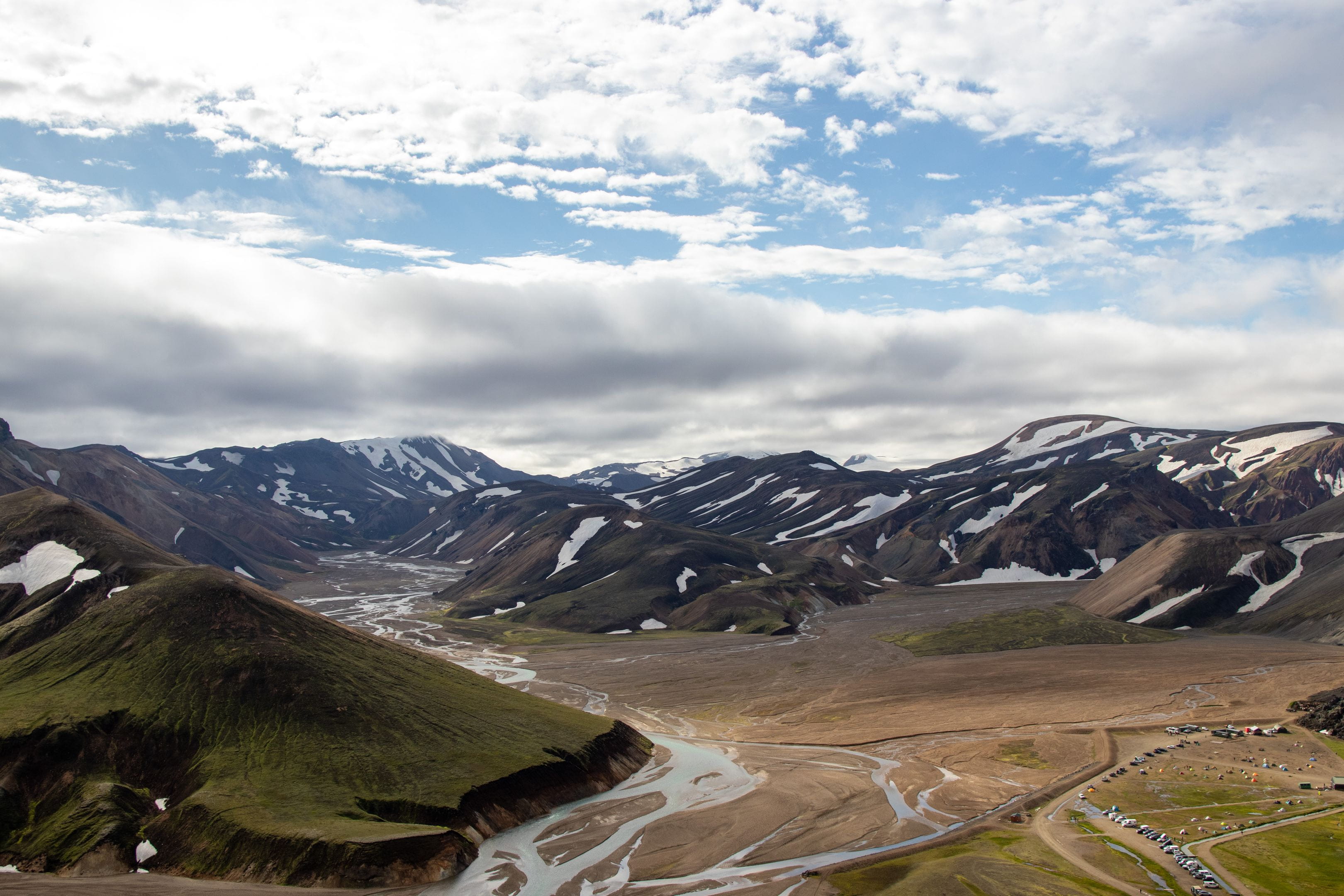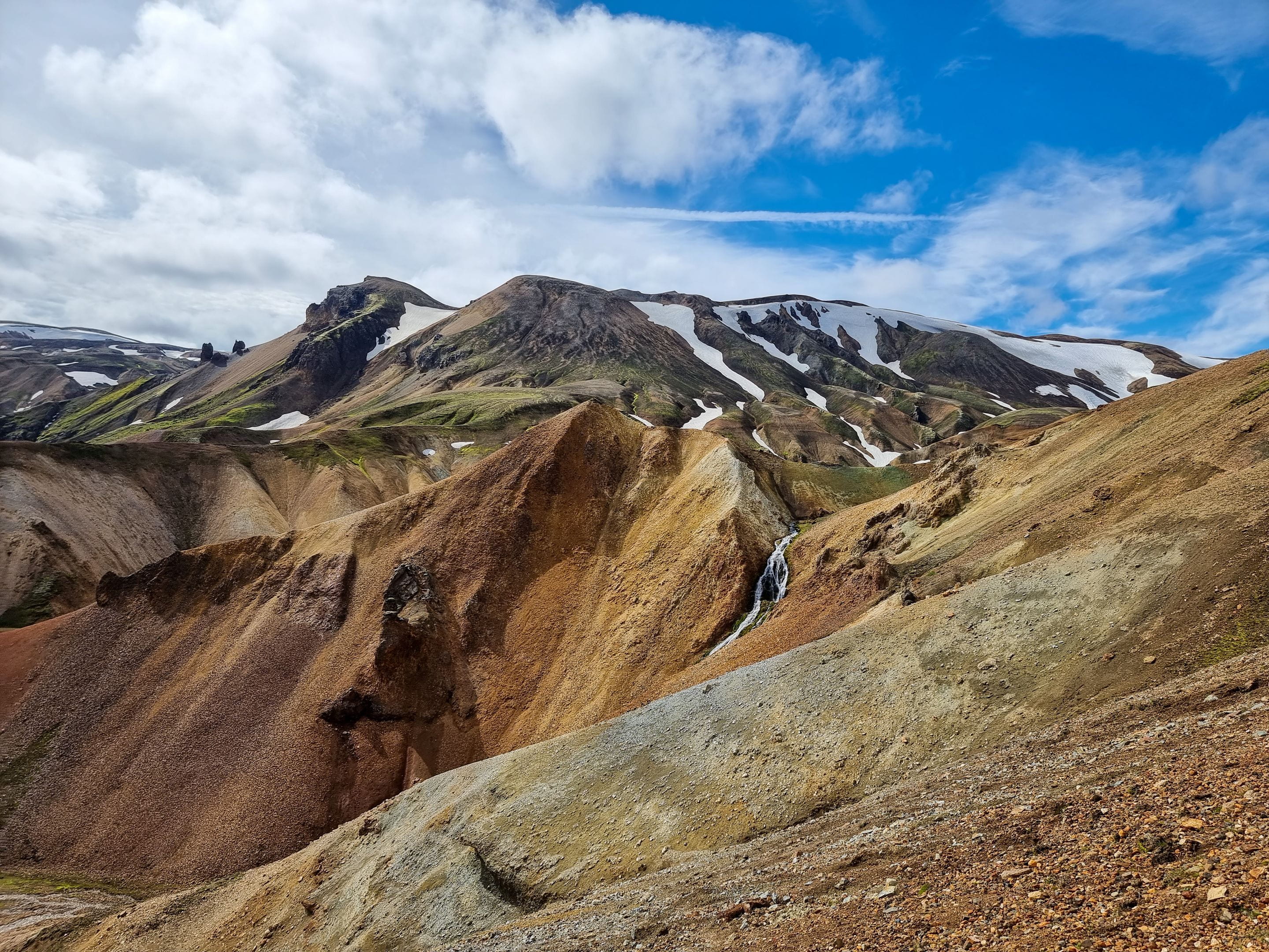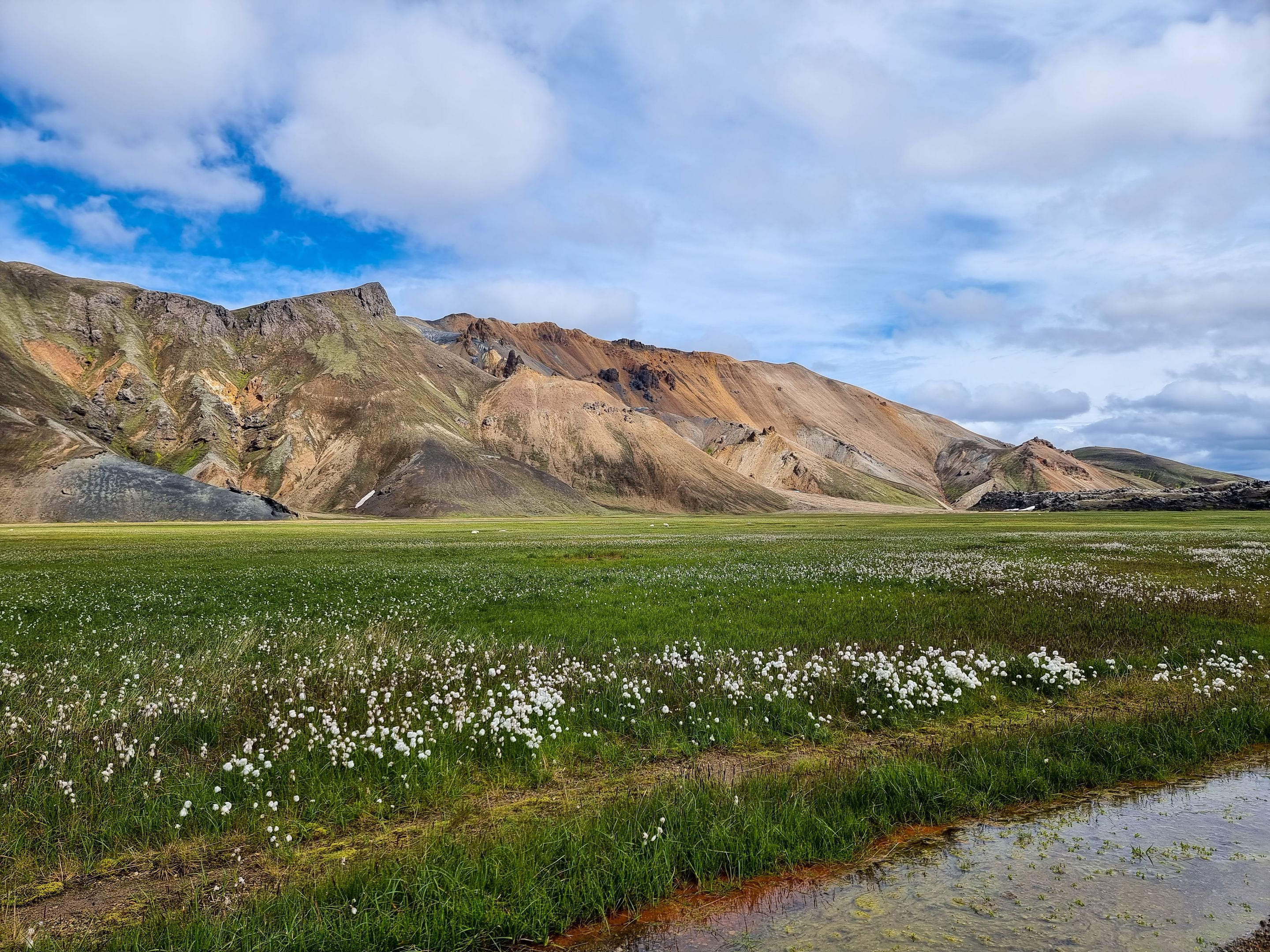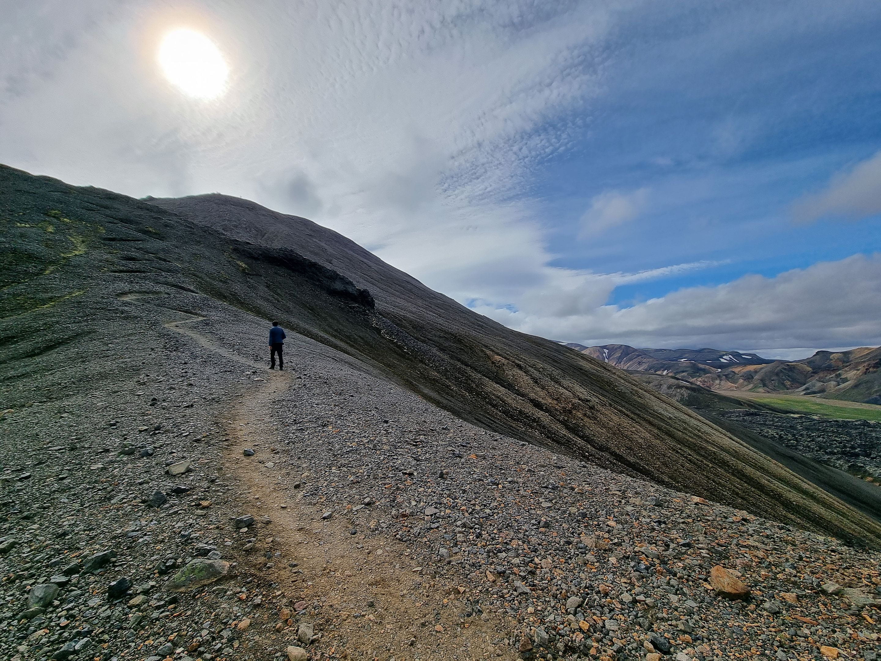 Nous allons faire deux randonnées et dormir une nuit sur le camp du Landmannalaugar pour profiter pleinement de ce lieu qui ne se dévoile vraiment qu’au prix de quelques efforts. Les deux randonnées se complètent bien car elles donnent des points de vue différents sur ces montagnes aux couleurs chatoyantes. Tout est beau où que l’on regarde à perte de vue ! Les photos parlent d’elles-mêmes.
